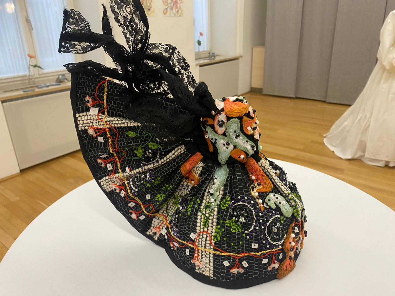 Die Arbeiten von Franziska Pruckner sind gekennzeichnet durch die surrealistische Formensprache und die humorvolle Herangehensweise an aktuelle gesellschaftliche Themen. Dabei bewegen sich die Projekte im Bereich des Textilen, vor allem in Mode, Weberei und Kostüm. Nachhaltige Upcycle-Arbeiten stellen das Wiederverwerten von redundant gewordenen Materialien des Alltags in den Mittelpunkt, während historische Kostümnachahmungen das Damals mit dem Jetzt in Kontext bringen und Selbstdarstelllung auf Social Media Plattformen adressieren. Als Teil einer Generation, die zwischen Zukunftsbangen und Hedonismus schwebt, vertritt die Künstlerin ihren Standpunkt mittels analog-digitalen Arbeiten, die nicht nur zum Diskurs, sondern auch zum Schmunzeln anregen.