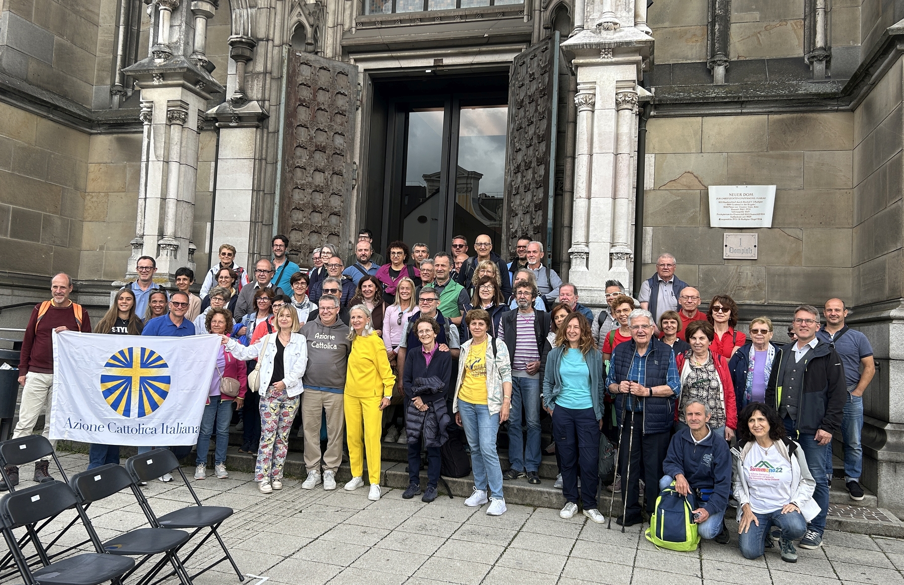 Die Gruppe der Azione Cattolica Italiana aus Vicenza verbrachte mehrere Tage in Österreich. Nach einem Besuch in der Gedenkstätte Mauthausen stand eine Begegnung mit dem Team der KA OÖ in Linz auf dem Programm. KA OÖ-Präsidentin Gabriele Hofer-Stelzhammer begrüßte die Gäste aus dem Nachbarland. Nach einem kurzen Kennenlernen tauschte man sich im Dompfarrsaal zu den inhaltlichen Schwerpunkten aus. Während die Gäste aus Italien derzeit dem Thema Frieden hohe Priorität widmen, fokussiert sich die KA OÖ aktuell auf die Themen Demokratie und Klimaschutz/Schöpfungsverantwortung.