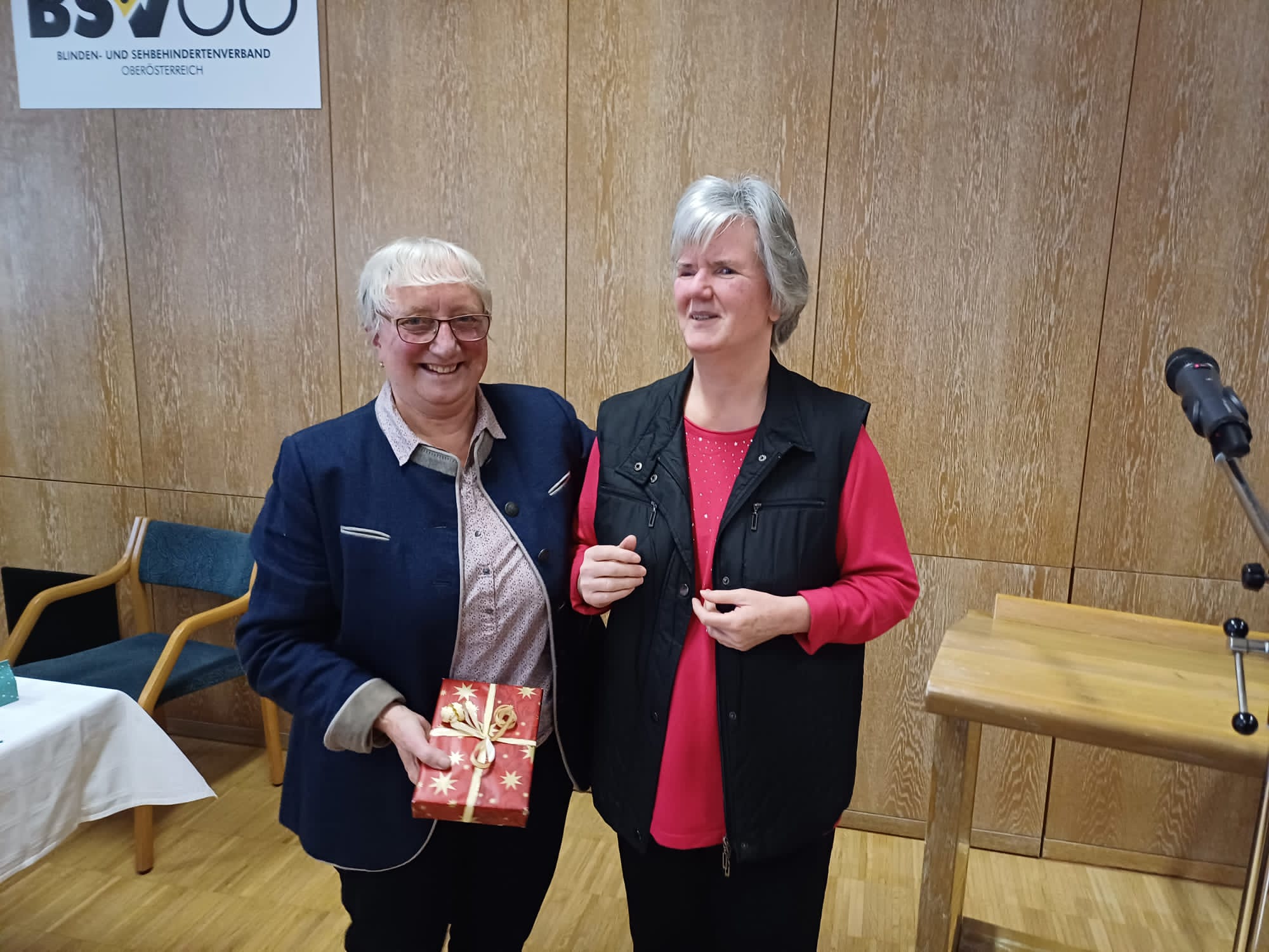 Alfons Aufreiter dankt seiner Schwester für 25 Jahre, in denen sie die Blindenpastoral gemeinsam mit dem Blindenseelsorger leitet.