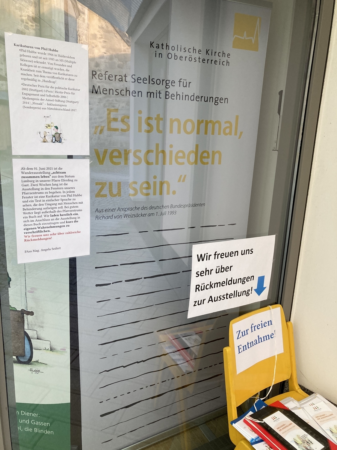 Die Seelsorge für Menschen mit Behinderungen präsentierte in der Pfarre Eferding die Wanderausstellung INKLUSION des Bistums Limburg.