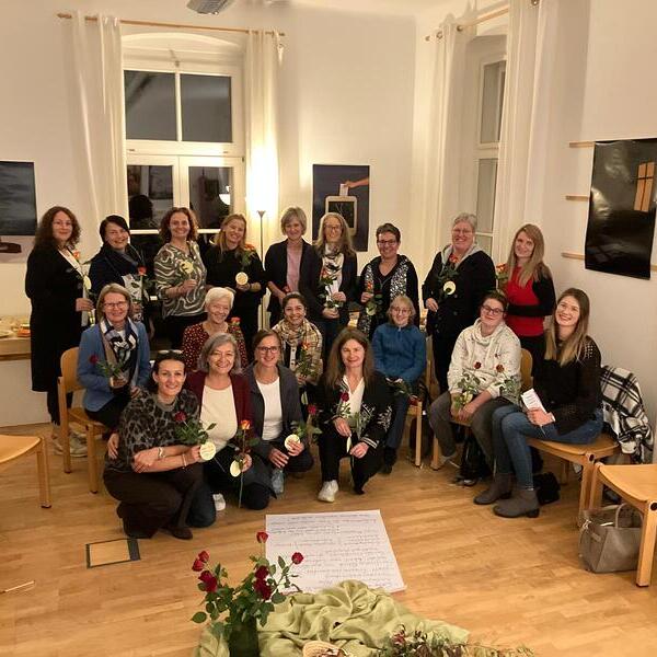 Zum Abschluss durfte jede Teilnehmerin eine Rose aus der Mitte nehmen und daran einen Gedanken, Wunsch oder Impuls notieren – etwas, das sie aus dem Abend mitnimmt und weitertragen möchte. Symbolisch standen die Rosen für Wertschätzung, Anerkennung und die kleinen Momente, die das Leben lebenswerter und sinnerfüllter machen. Mit diesem Abschluss wurde deutlich: Frauenarbeit muss sichtbar, wertgeschätzt und nachhaltig gestaltet werden.
