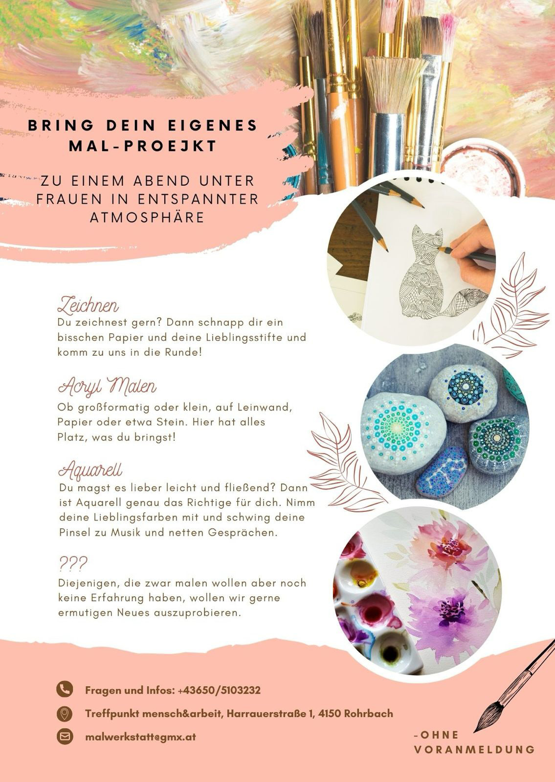Bring dein eigenes Mal-Projekt zu einem Abend unter Frauen in entspannter Atmosphäre mit.