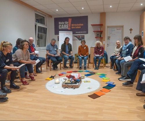 Schon am Freitag gab es einen spannenden Austausch rund um die Geschichte der drei Steinmetze und unserer Arbeitsbiografien. Am Samstag starteten wir mit Sinn-Bildern unserer Arbeit aus dem Biografiekoffer und vertieften uns auf unterschiedliche Weisen.