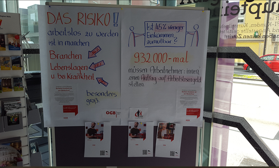 Im Vorfeld fanden in Wels gleich mehrere Aktionen statt. ÖGB, Treffpunkt mensch&arbeit Wels, sowie die Volkshilfe fordern von Verantwortungsträger*innen Maßnahmen zur Senkung der Arbeitslosigkeit. Auch 334 000 sind zu viel.