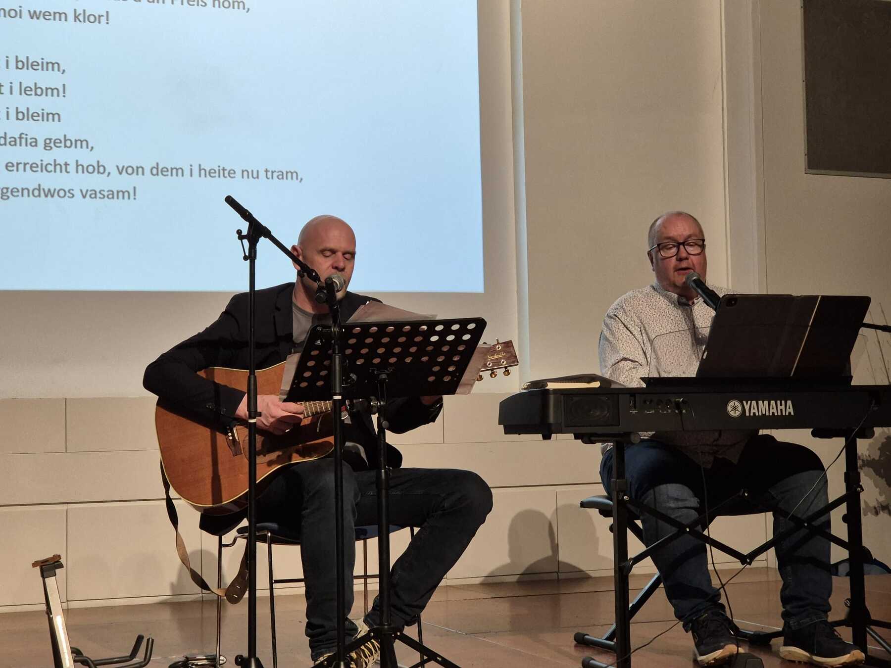Für einen stimmungsvollen Ausklang des ersten Tages sorgte das unterhaltsame Abendprogramm mit dem Liederduo Christoph (Burgstaller) und Thomas (Sinnhuber), das zum Mitsingen und gemeinsamen Erleben einlud.