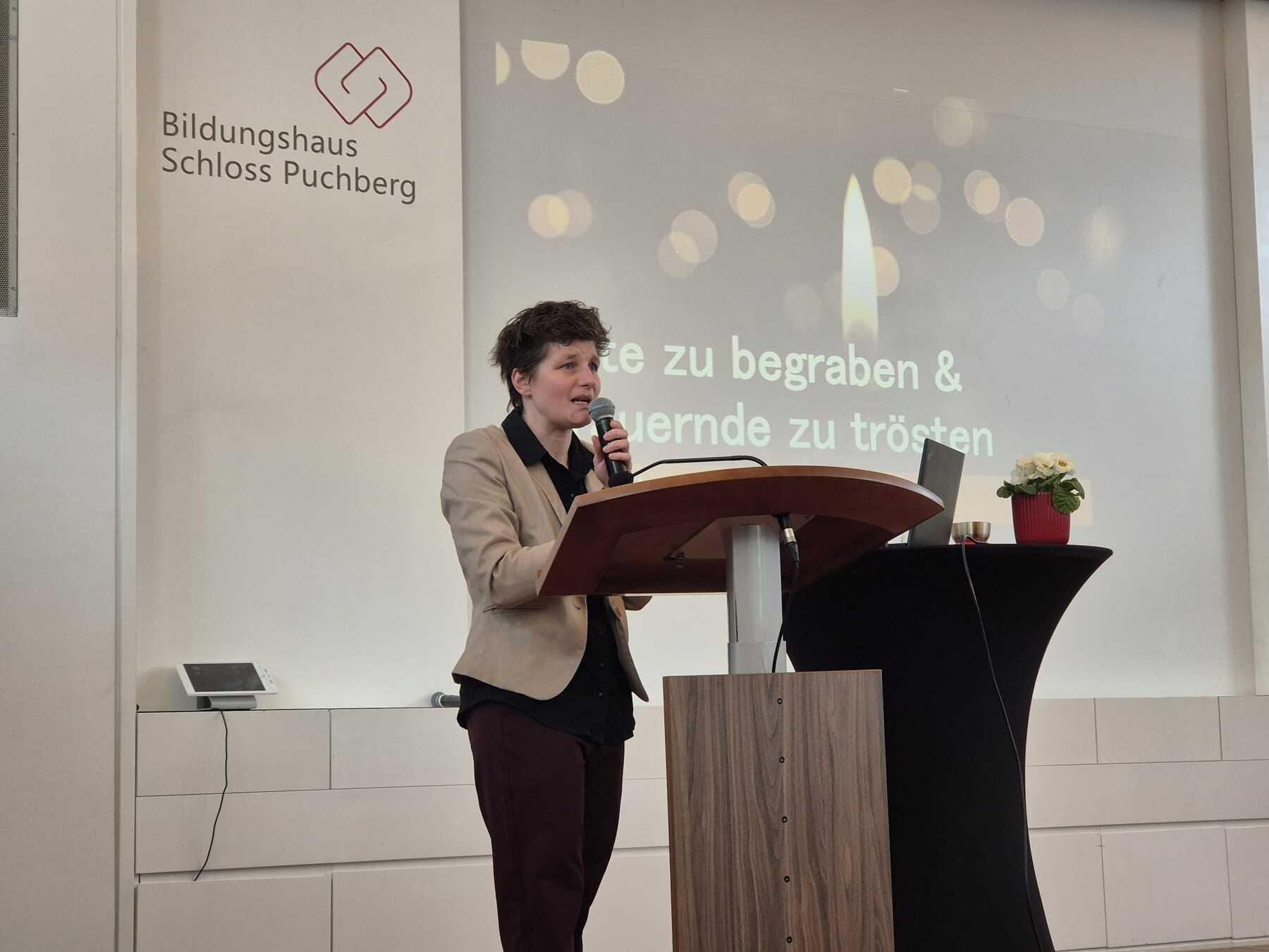 Der erste Tag stand ganz im Zeichen von Impuls und Praxisnähe. Nach der Begrüßung durch Vorstandsvorsitzende Sandra Schaumberger hielt Pfarrer Klaus Dopler einen überaus inspirierenden spirituellen Impuls. Referentin für Trauerpastoral, Nicole Leitenmüller, setzte mit Ihren Ausführungen wertvolle inhaltliche Akzente. Besonders der einfühlsame und zugleich praxisorientierte Zugang zum Umgang mit trauernden Menschen im Pfarrbüro wurde von den Teilnehmerinnen als sehr bereichernd empfunden.