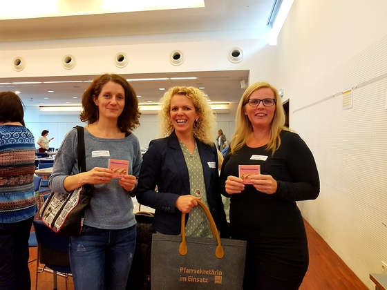 Erstmals konnten die Pfarrsekretärinnen eine exklusive Filztasche mit der Stickerei "Pfarrsekretärin im Einsatz" erwerben. Diese Tasche war der große Renner und die Kolleginnen werden diese stolz bei ihrer Arbeit in den Pfarren tragen. Zur Ehrung der Kolleginnen mit 20 bzw. 25 Dienstjahren im Pfarrsekretariat wurde diese Tasche als Geschenk überreicht.