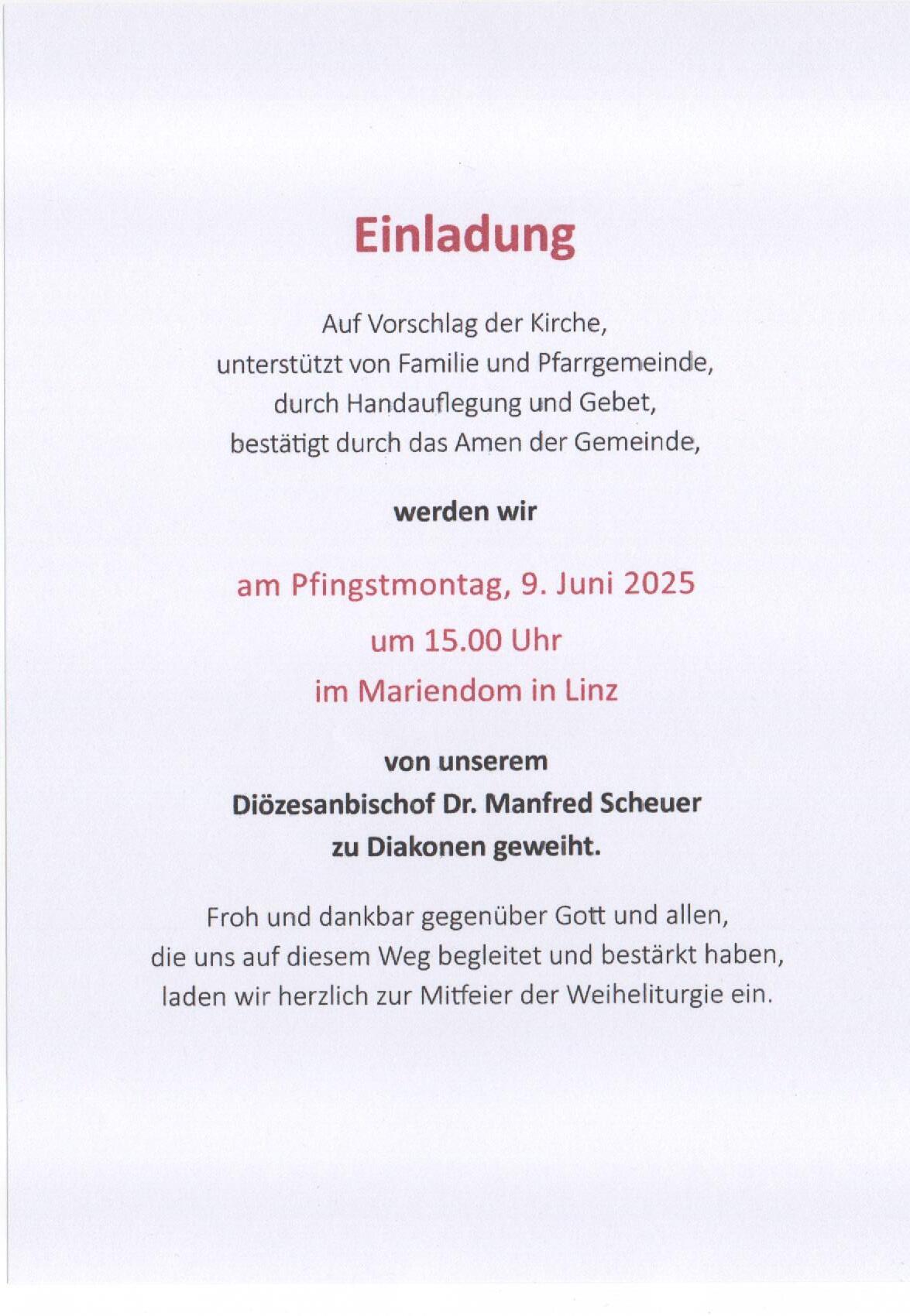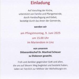Einladung zur Diakonenweihe