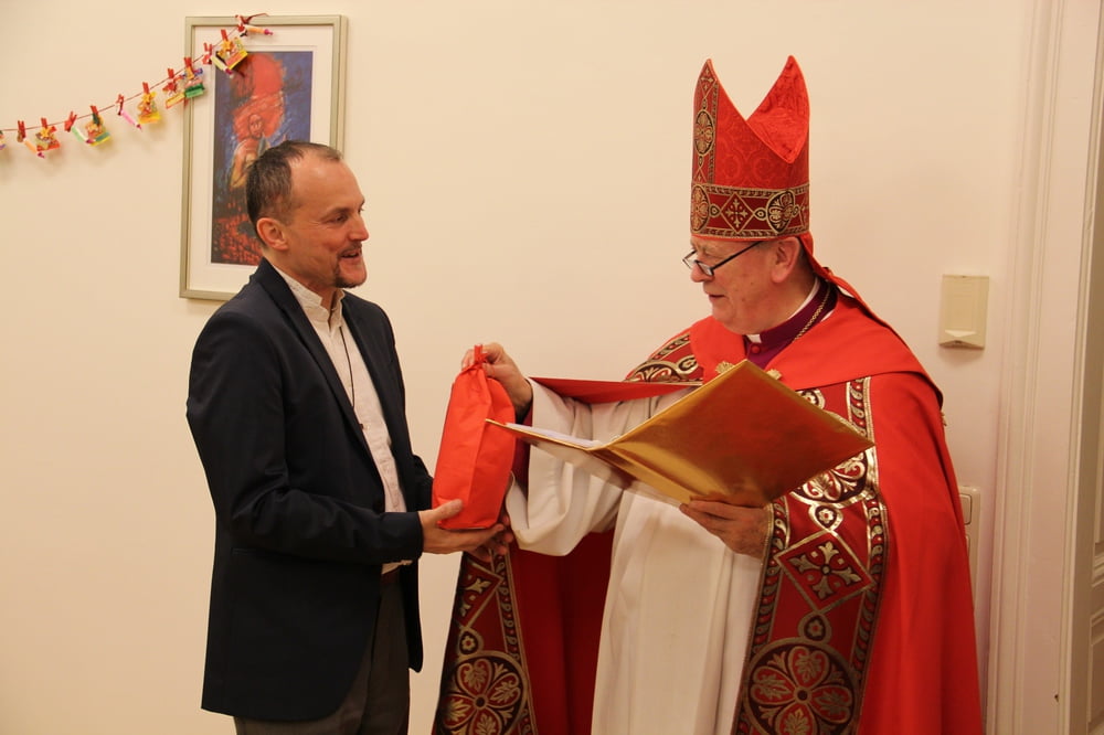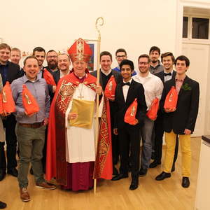 Bischof Ludwig Schwarz erklärte sich bereit, sich für uns als Nikolaus zu verkleiden. Obwohl er ein vielbeschäftigter Bischof ist, nahm er sich doch die Zeit, ließ sich verkleiden und kam zu uns. Eigentlich wollte er nur eine Stunde bleiben, aber da es ihm so sehr gefiel, blieb er 2 ½ Stunden lang bei uns. Wir verbrachten einen sehr schönen und lustigen Abend miteinander. Es wurden Lieder gesungen, Gedichte aufgesagt gegessen und getrunken. Bischof Ludwig genoss sichtlich die Gemeinschaft mit den Propädeutikern und wir seine väterliche Art! Alles in allem ein sehr gelungener Abend.