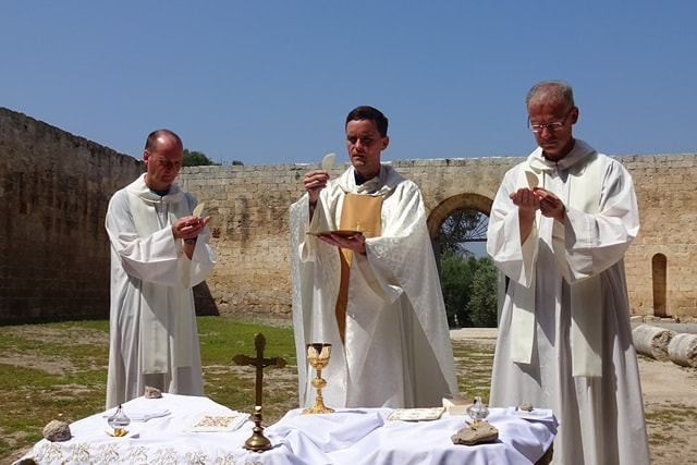 Am Morgen starteten wir sofort unsere kleine Reise bis wir dann kurz vor Mittag in Sepphoris ankamen, wo wir in der Ruine der St. Anna Kirche, einer Kreuzfahrerbasilika, Messe feierten. – Hier wird nach einer Überlieferung das Haus der Eltern Mariens, Joachim und Anna, vermutet.