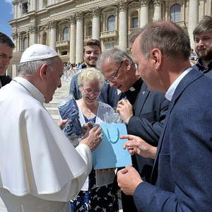 „Betet für mich!“, betonte Papst Franziskus, nachdem ihm Rektor Erwin Neumayer einige Mitbringsel aus dem Propädeutikum überreichte hatte, darunter auch ein T- Shirt mit dem Logo des Propädeutikums und eine Tasse mit eben demselben Logo „zum Trinken seines beliebten Matetees“.