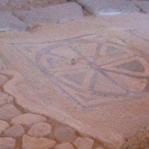 Bereits am ersten Tag unseres einwöchigen Aufenthalts in Tabgha besichtigten wir auch die Hauptsehenswürdigkeit des sonst sehr stillen (aber touristisch stark frequentierten) Ortes, nämlich die "Brotvermehrungskirche" (vgl. Mt 14,13-21) mit dem weithin bekannten Mosaik der "fünf Brote und zwei Fische", das ungefähr aus dem vierten Jahrhundert stammt. In diesem schlicht gestalteten, aber trotzdem sehr stimmungsvollen Gotteshaus konnten wir auch die heilige Messe und das Stundengebet gemeinsam mit den Benediktinermönchen feiern.