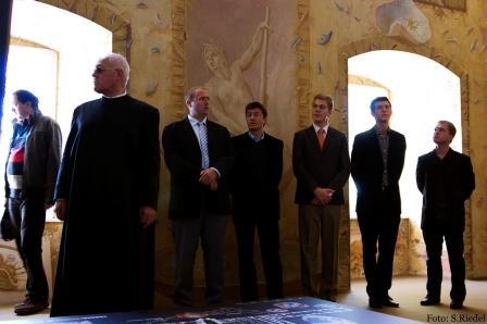 Leider blieb für die hoch interessante Ausstellung, die gerade läuft, nur wenig Zeit, da wir am frühen Nachmittag schon wieder nach Horn aufbrechen mussten. Am Vormittag feierten wir gemeinsam mit Abt Christian Haidinger OSB die Hl. Messe in der prachtvollen Stiftskirche mit. Danach führte er uns ein wenig durch das Stift und zeigte uns die mittelalterlichen Kirchen-, Kloster- und Burgen-Reste, die unter der heutigen barocken Anlage gefunden wurden. Die bereits erwähnte Ausstellung, die einem der bedeutendsten österreichischen Barockkünstler, Paul Troger, gewidmet ist, begleitete uns während unseres Rundganges. Paul Troger schuf in Altenburg mit einer Interpretation der Apokalypse des Johannes eines der bedeutendsten Barockfresken Mitteleuropas. Bekannt ist der Künstler darüber hinaus speziell für seine unbeschreibliche Kreativität im Umgang mit der Farbe Blau. Nicht umsonst spricht man in diesem Zusammenhang sehr gerne vom "Troger-Blau".