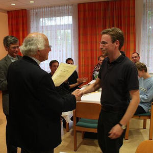Schlie�lich folgte die Austeilung der Teilnahmebest�tigung f�r das Prop�deutikum und die Austeilung der Abschiedsgeschenke f�r unsere Rektoren und den Direktor. Mit einer Diashow mit Bildern aus Israel folgte dann das Ende der Abschiedsfeier.