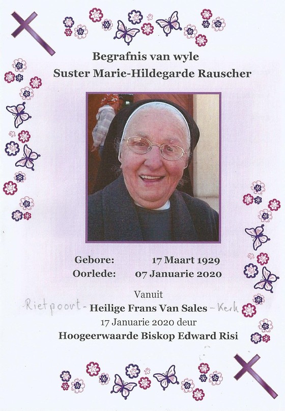 Sr. Maria-Hildegard Rauscher wurde in Rietpoort, ihrer langjährigen, geliebten Wirkungsstätte, im Beisein einer großen Schar von Wegbegleitern zu Grabe getragen.