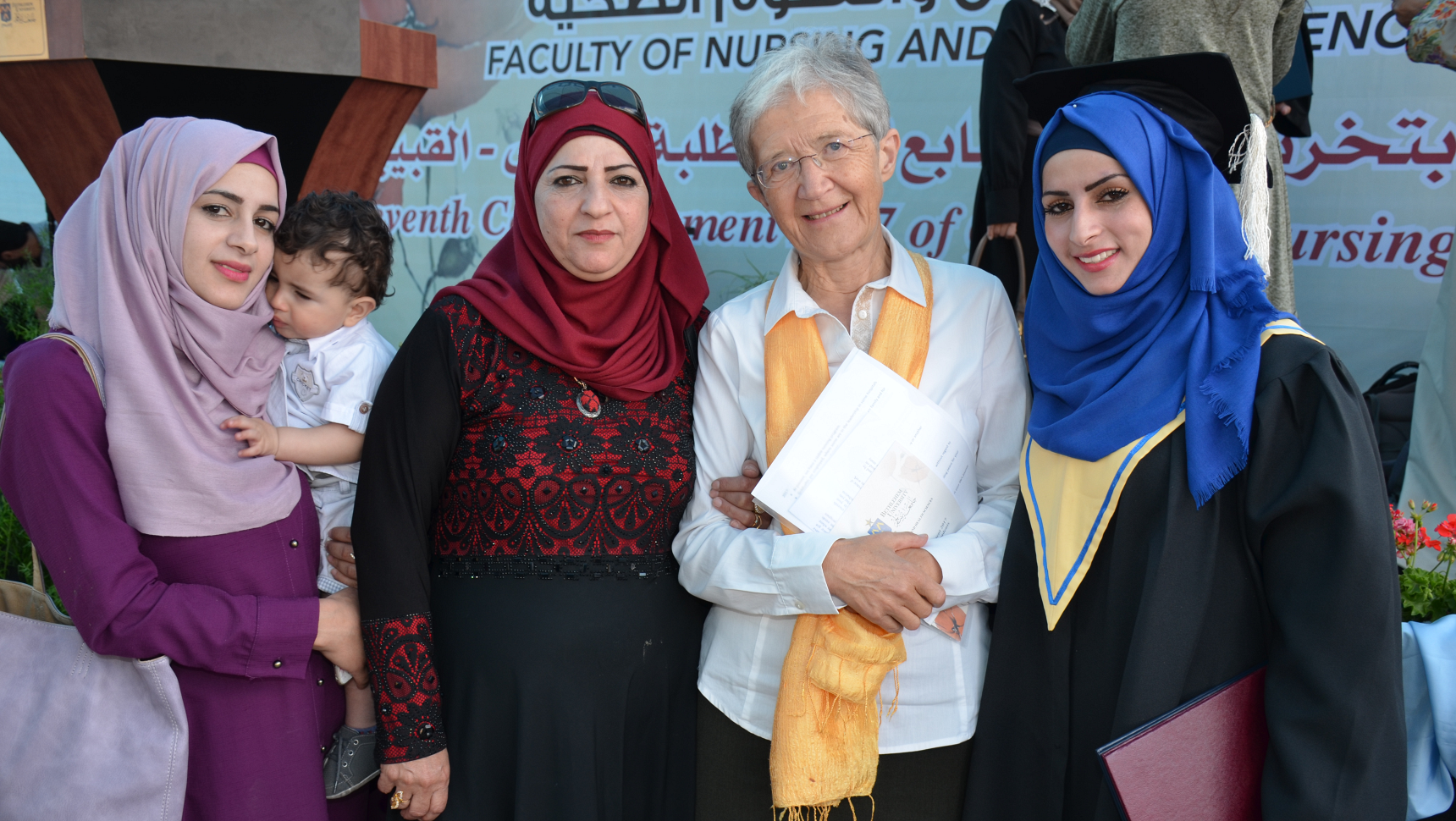 Wenn ich diese Zeilen schreibe, herrscht in Israel eine fragile Ruhe, was die Konflikte mit den Nachbarländern betrifft. Im Gazastreifen halten die Angriffe und Kämpfe unvermittelt an. Von Stabilität oder Normalität sind wir weit entfernt. Darum konzentriert sich die Arbeit unserer Schwestern darauf, Verlässlichkeit zu bieten. Nicht nur die Bewohnerinnen in Beit Emmaus, auch die Studierenden an unserer Pflegefakultät benötigen jetzt unsere besondere Unterstützung. Dies gilt auch für die 1.500 Schülerinnen und Schüler der Salvatorschule in Nazareth. Im vergangenen Jahr wurde die Schule als eine der besten Schulen des Landes Israel ausgezeichnet — auch wegen der Förderprogramme für benachteiligte und lernbehinderte Kinder. Doch das alles wirkt zurzeit nebensächlich.