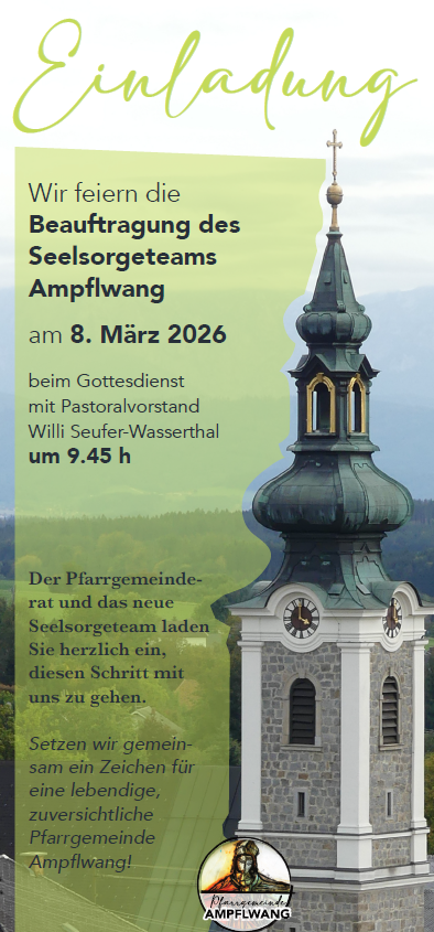 Ein sehr gelungenes Beispiel für eine Einladung zur Beauftragung des Seelsorgeteams wurde uns dankenswerterweise von der Pfarrgemeinde Ampflwang zur Verfügung gestellt.