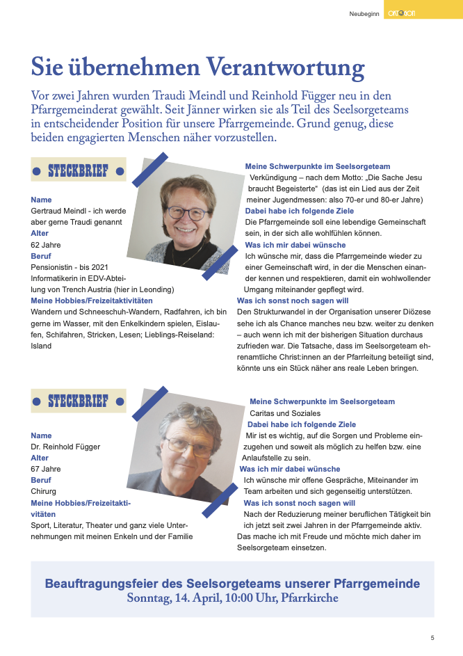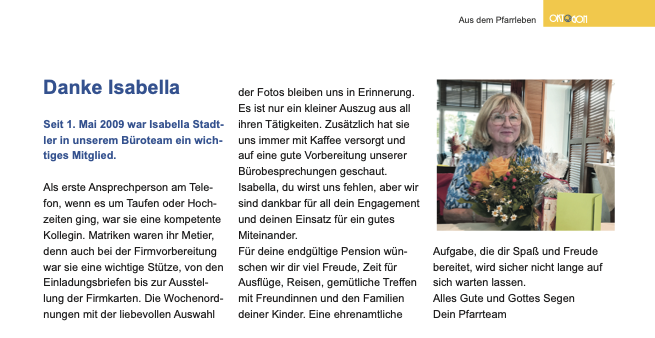 | Vorstellung Ehrenamtlicher im Pfarrgemeindeblatt |
