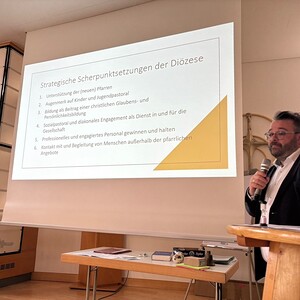 Daniel Neuböck, Bereichsleiter "Seelsorge und Liturgie" stellt die aktualisierten strategischen Ziele der Diözese Linz vor.