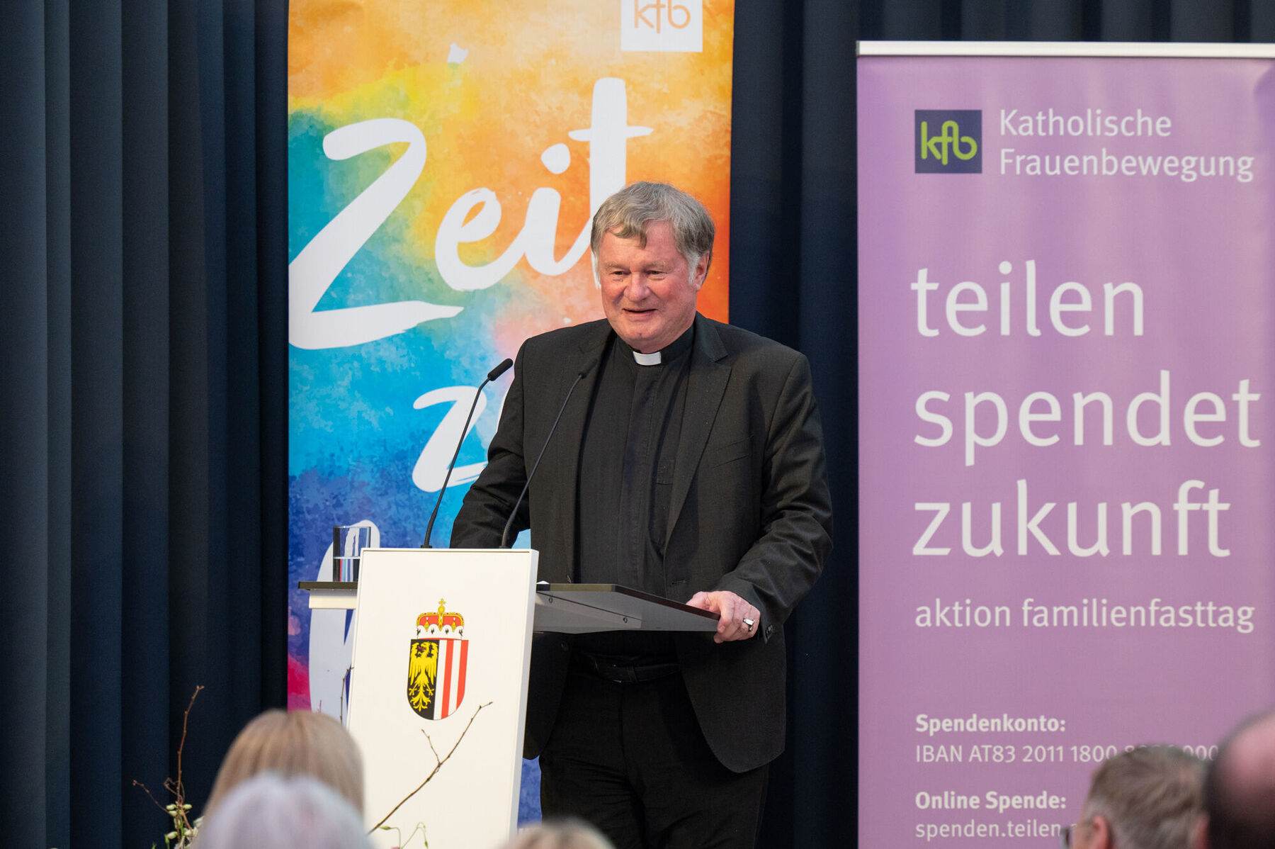 Der Landeshauptmann sprach davon, dass sich kümmern ein Auftrag ist, der nicht an unseren unmittelbaren Grenzen endet, sondern dass man darüber hinausschauen muss, man darüber hinaus verantwortlich ist und dankte den kfb-Frauen um Margit Schmidinger für ihr Engagement. Dieses fördere eine Kultur des Miteinander.