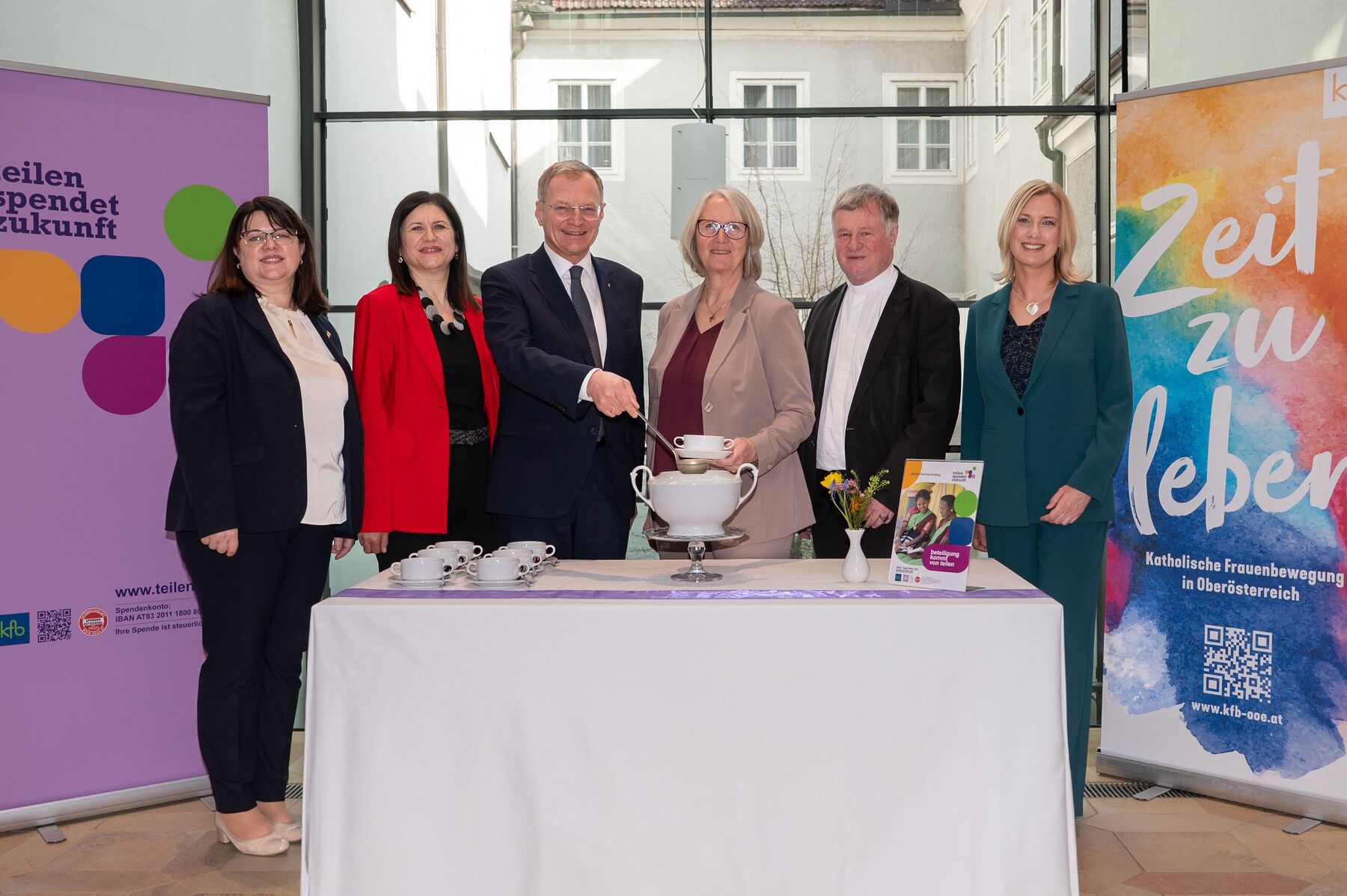 „Das Benefizsuppenessen erinnert uns daran, dass Zusammenhalt mit einfachen Gesten beginnt“, sagte LH Thomas Stelzer. Teilen heiße hinschauen, Verantwortung übernehmen und dort helfen, wo Unterstützung dringend gebraucht werde. „Gerade Familien, die unter schwierigen Bedingungen leben, brauchen faire Chancen und Perspektiven.“ Stelzer dankte für das Engagement der Katholischen Frauenbewegung, das zeige, wie aus Bewusstsein konkrete Hilfe werde: „Diese Solidarität ist ein starkes Zeichen – auch über Oberösterreich hinaus!“