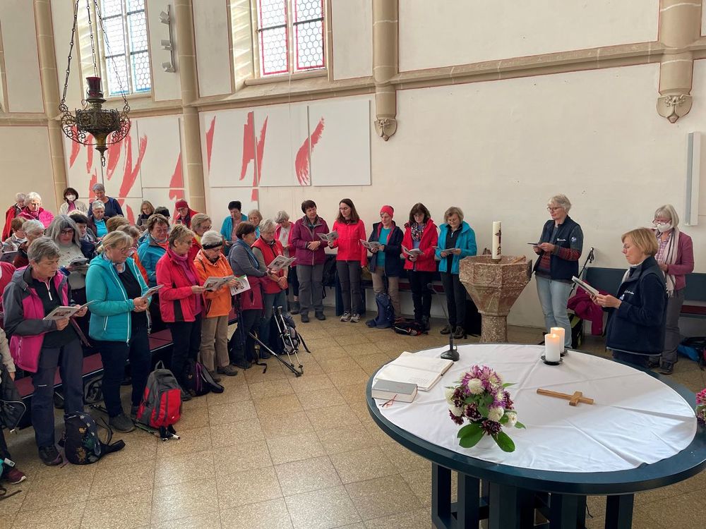 Unterwegs luden die Wegbegleiterinnen, die die Gruppen führten, mit spirituellen Impulsen und Liedern zum Innehalten ein. Zeit zu leben war das verbindende Motto, unter dem der Tag stand. Jede Gruppe trug einen Pilgerstab mit, der mit Kräutern und Blumen geschmückt war und zu Beginn der Wanderung gesegnet wurde.