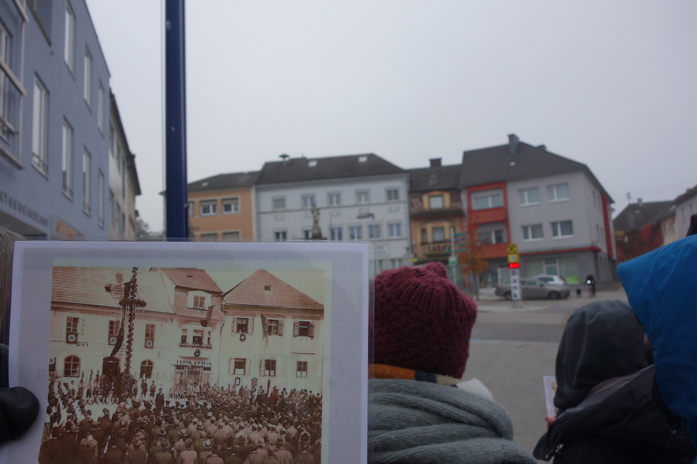 Diese Verstrickungen gab es auf verschiedenen Ebenen. Es ging dabei vor allem um die räumliche Nähe des oben genannten Ortes mit den Lagern, die Sichtbarkeit des Schreckens für die Menschen, die zu dieser Zeit in dieser Region gelebt haben, und was dies bedeuten konnte: Welches Verbrechen ist hier begangen worden? Wer hat davon gewusst? Wer war Zuschauer, wer war Täter, wer war Opfer? Wie kann man diese Begriffe im Zusammenhang mit dem Umfeld der KZ auseinanderhalten - wie fließend waren hier die Grenzen?