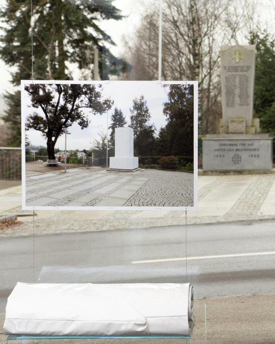 Nach der Entfernung der Hülle wächst dem Projekt ein weiterer Schritt hinzu: Herter legt die Hülle, mit der sie das Kriegerdenkmal zum temporären Verschwinden gebracht hatte, im Johann Gruber Pfarrheim sichtbar aus. Durch dieses „Relikt“ bleibt der Schritt 3 weiterhin sichtbar und vermittelt so auch nach der Abnahme einen wichtigen Aspekt des Projekts.
