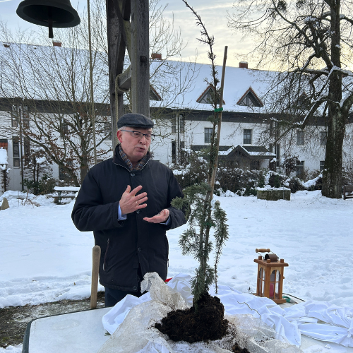Eine kleine Zeder Pendula -an diesem Tag gepflanzt von unserem Bibelgärtner P. Hans Eidenberger SM - darf von nun an unseren Hof aufwerten. Unser mitwachsender CHRISTBAUM - ein Friedenszeichen - richtet sein Haupt nach oben... hält seine Zweige aber auch schützend über die Erde.