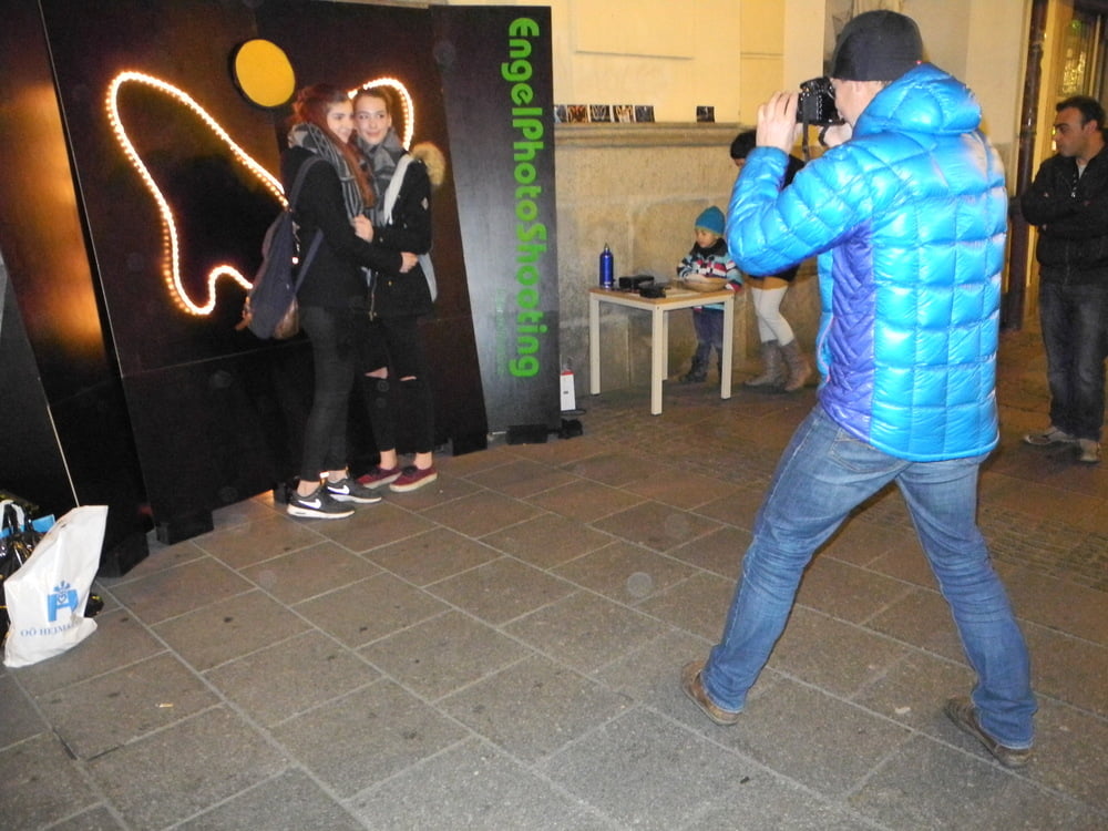 Für einen Augenblick ein Engel sein „Die Aktion ist der Versuch, den vorweihnachtlichen Einkaufsstress zu unterbrechen. Die Menschen werden als Engel fotografiert – ein Hinweis darauf, dass wir alle füreinander Engel sein können: durch ein Lächeln, eine Umarmung in schwerer Zeit, ein offenes Ohr, einfach durch unser Da-Sein. Und die Welt wird eine andere“, so Hager. Jeder Mensch trage das Göttliche in sich, die Menschwerdung Gottes finde in jedem Menschen statt.
