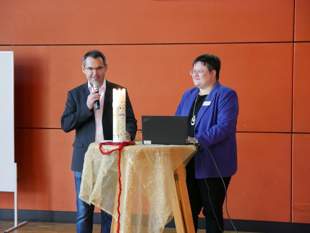 Maria von Magdala und ihre Begegnung mit dem auferstandenen Jesus stellten Dechant Thomas Schawinski und Dekanatsassistentin Elisabeth Greil als spirituelles Leitbild an den Anfang, um zum gemeinsamen Aufbruch in das Neue zu ermutigen. Mit Maria Magdalena verdeutlichten sie wie wichtig es ist, zuerst das Alte zu betrauern und loszulassen, um das Gerufen sein in das Neue erkennen zu können. Sie ermutigten mit dem Blick auf Christus gemeinsam Schritt für Schritt den Zukunftsweg zu gehen. Dazu wurden 21 Kerzen angezündet als Zeichen für die 13 Pfarrgemeinden und die weiteren pastoralen Orte (Kindergärten, Schulen, Senorenzentren, TMA voest…) im Dekanat. Sie sind Zeichen dafür, dass auch in Zukunft jede Pfarrgemeinde und jeder pastoraler Ort wichtig sein wird – wenn auch vielleicht anders als bisher.