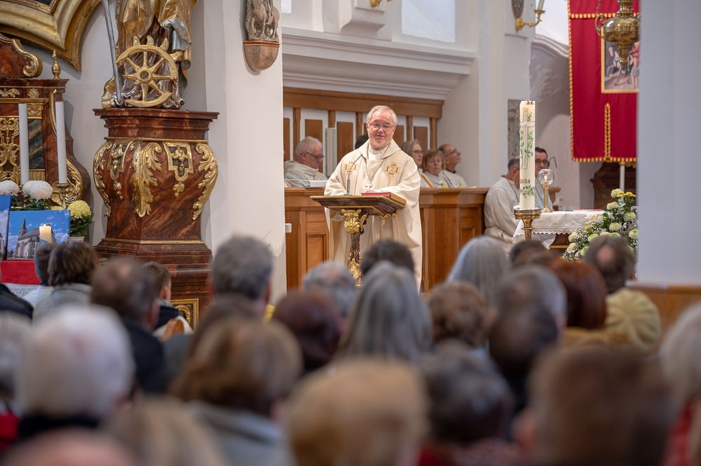 Bereits vor dem Gottesdienst sorgten die Musikkapellen Engelhartszell und Peuerbach mit einem gemeinsamen Platzkonzert vor der Kirche für festliche Stimmung. Die Gestaltung des Gottesdienstes erfolgte in enger Zusammenarbeit mit Vertreter:innen aller Pfarrgemeinden – ein starkes Zeichen für gelebte Gemeinschaft und den gemeinsamen Aufbruch in eine neue pastorale Zukunft. So feierten Ministrant:innen aus fast allen Pfarrgemeinden den Gottesdienst mit. Am Beginn zogen Seelsorgeteam-Mitglieder aus den 14 Pfarrgemeinden und Vertreter:innen der Caritas-Einrichtungen St. Pius in Steegen/Peuerbach und Caritas invita in Engelhartszell in die Kirche ein. In den Händen hielten sie Kerzen – eine für jedes Seelsorgeteam der Pfarrgemeinden und für die beiden pastoralen Orte. Die Kerzen wurden dann zum Bild der jeweiligen Pfarrkirche auf die Seitenaltäre gestellt. Musikalisch gestaltet wurde der Gottesdienst von einem Projektchor mit rund 60 Sänger:innen aus allen Pfarrgemeinden unter der Leitung von Josef Schmidauer mit Gesängen aus der Franziskusmesse von Friedrich Hintenaus und Christian Wirth.