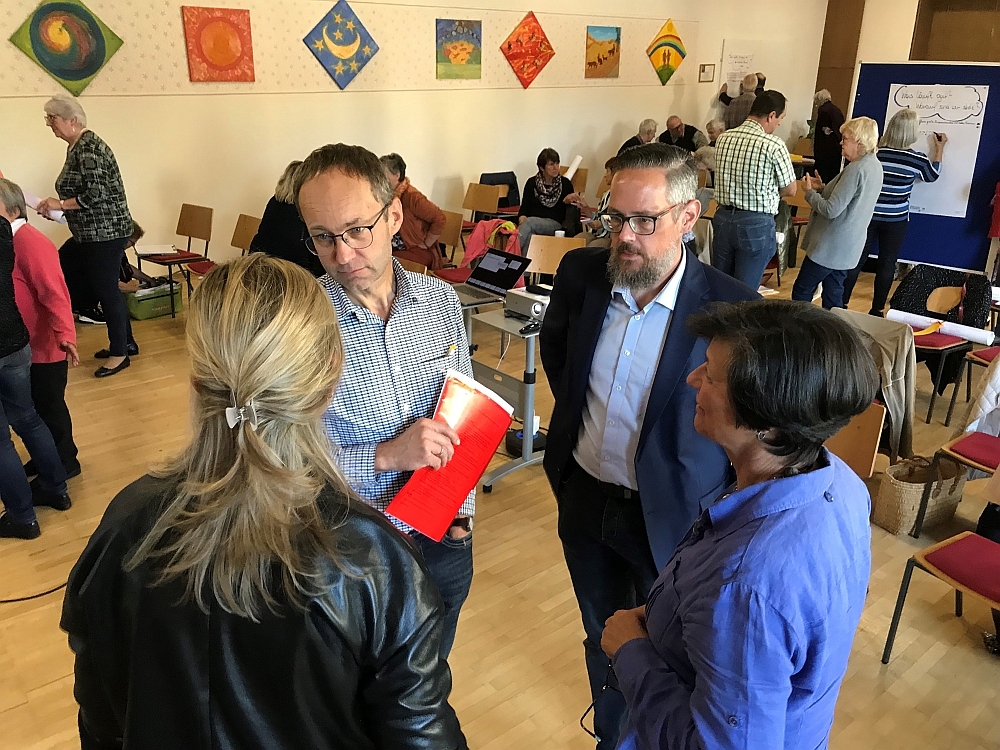 An der Startveranstaltung des Dekanats Braunau nahm Generalvikar Severin Lederhilger als Vertreter der Diözesanleitung teil. Er wies darauf hin, dass es zentrales Anliegen der Pfarrstrukturreform sei, Christ-Sein und Kirche-Sein als gemeinsame Aufgabe zu verstehen. Die Veränderung der Strukturen sei dafür nur „das Hilfsmittel, ein Instrument, das erst dann klingt, wenn es bespielt wird, wenn die Funktionen und Aufgaben gut genützt und mit Leben erfüllt werden“. Der Generalvikar skizzierte das Dekanat Braunau als „Region mit viel Erfahrung als Raum von wechselnden Grenzen, von Brücken und Übergängen, von Möglichkeiten des Zusammenfindens und Sich-Austauschens“. Bei der Auftaktveranstaltung gehe es wie bei einem neuen Orchester darum, festzustellen, welche Instrumente da seien, wie man diese passend zusammensetze und gut aufeinander abstimme, „damit am Ende jene Symphonie möglich ist, die alle zusammen mit Freude spielen und die einladend ist für die Menschen“. Es liege eine große Chance darin, sich auf eine gemeinsame Zukunft vorzubereiten und diese im Miteinander zu gestalten, so Lederhilger. Ziel sei, „dass die Freude am Christ-Sein und Kirche-Sein spürbar wird für uns und die Menschen um uns“. Er wünschte der Pionierpfarre Braunau Freude am Gestalten und Gottes Segen für den Weg. Lederhilger brachte auch seine Vorfreude auf die Dekanatsvisitation zum Ausdruck, bei der er von 14. bis 21. November mit Bischof Manfred Scheuer und Bischofsvikar Wilhelm Vieböck im Dekanat zu Gast sein wird. Bei den Gesprächen und Begegnungen würden die Visitatoren versuchen, „die Aufbruchsstimmung zu bestärken und auch auf Sorgen einzugehen“, so der Generalvikar.