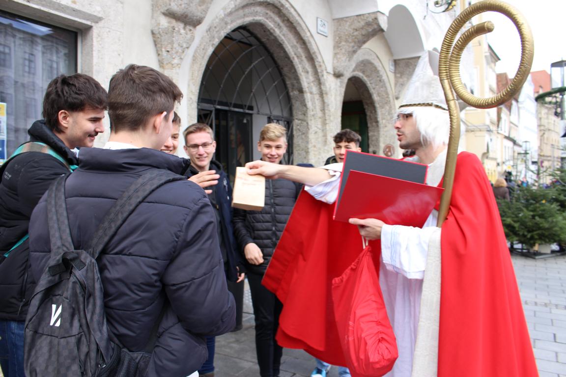 Unser serbischer Freiwilliger Nikola machte seinem Namenspatron alle Ehre und trat am 6. Dezember in seine Fußstapfen. Mit Freude borgte er sich von der Pfarre Ennsleite ein Nikolauskostüm aus und zauberte mit selbstgebastelten Nikolaussackerln in der Innenstadt von Steyr vielen Kindern, Jugendlichen und Erwachsenen ein Lächeln ins Gesicht. Natürlichen bekamen auch die Besucher:innen des Jugendzentrums am Nachmittag ein Sackerl geschenkt.