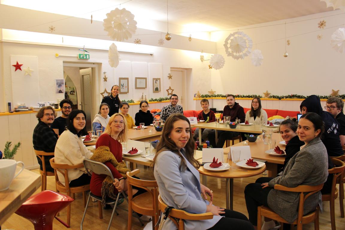 Am 09.12 fand nach zwei Jahren Corona-Zwangspause endlich wieder unsere altbekannte kulinarische Begegnung vor Ort im Jugendzentrum statt. Dieses Mal waren die Länder Serbien, Spanien und Moldau vertreten. Das Motto war wie immer zu dieser Zeit „Weihnachten wo anders“. Wir starteten mit einem leckeren serbischen Mayonnaisesalat zur Vorspeise. Als Hauptgang bekamen wir eine spanisch-marokkanische Kichererbsensuppe mit Nudeln. Das Dessert bestand aus moldauischen Obst- und Nusskuchen (nach Omas Rezept) und aus spanischen Keksen. Vor jeder Speise gab es eine Präsentation zu den Weihnachtstraditionen des jeweiligen Landes. Viele Leute aus vielen verschiedenen Ländern, aktuelle Jugendzentrumsbesucher:innen und Freunde des Gewölbes genossen einen wunderbaren Abend und ließen den Zauber der Kulinarischen Begegnung wirken und hochleben.