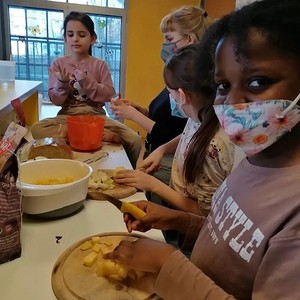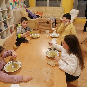 Am Donnerstag, 3. März, und damit am Beginn der Fastenzeit, gab es eine gute Gemüsesuppe, bei der die Kids fleißig mitkochten und anschließend selbst verspeisen konnten. Es wurde geschnitten, angebraten, aufgegossen und püriert - nd das alles mit sehr viel (Vor-)Freude.