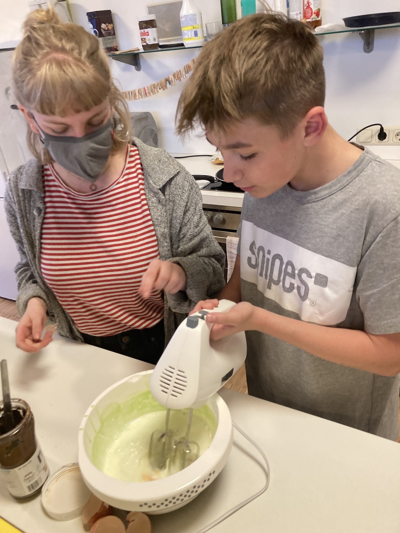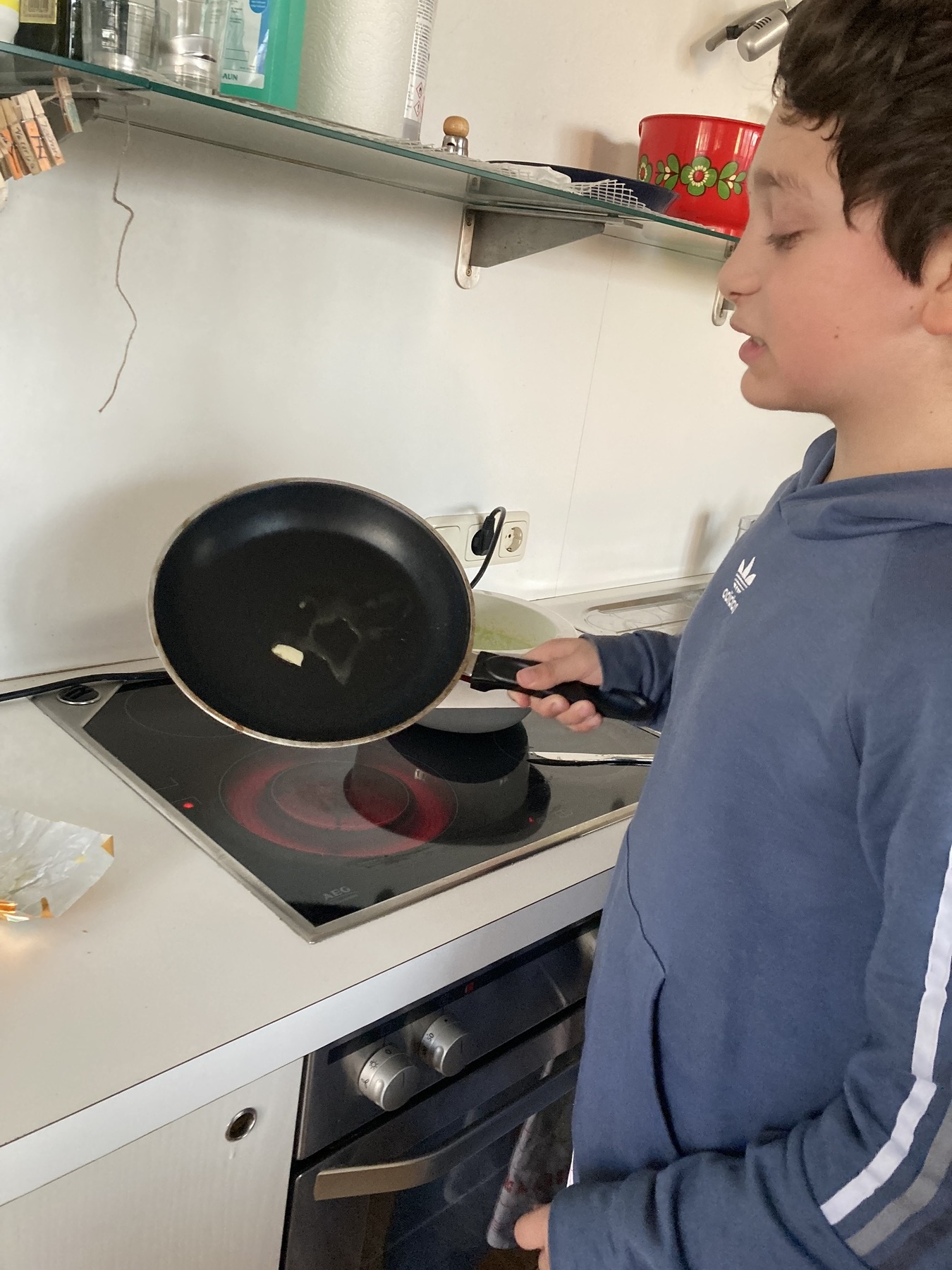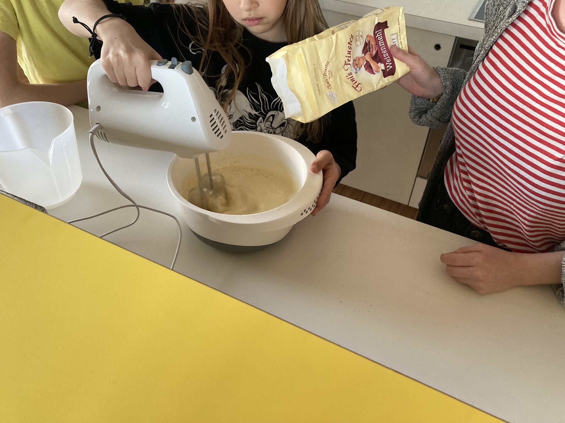 Die Kids halfen fleißig beim Teig zusammenrühren mit und viele ließen es sich nicht nehmen, selbst am Herd die Palatschinken herauszubacken - die eine oder andere wurde auch gekonnt in die Höhe geschupft und landete natürlich wieder in der Pfanne. ;)