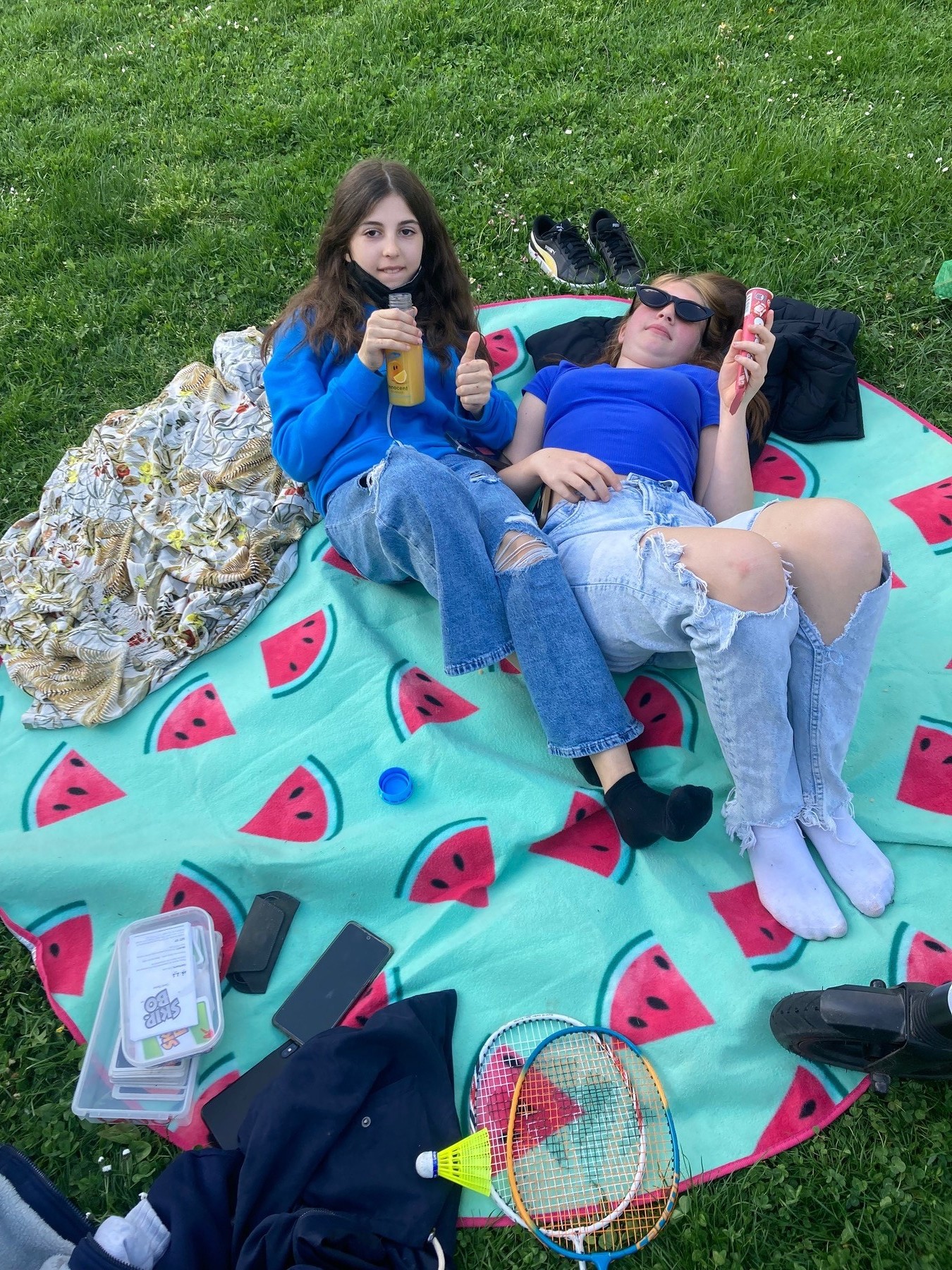 Wir chillen und spielen am Rädlerweg. Genauer gesagt in den dort anliegenden Park, da es da viele Bereiche gibt, die wir gerne nutzen: Dort ist es möglich, sich gemütlich auf unsere Picknickdecke zu legen oder Kartenspiele zu spielen, in der Wiese Federball zu spielen oder die Plätze zum Volleyball-, Fußball- und Basketballspielen zu nützen.