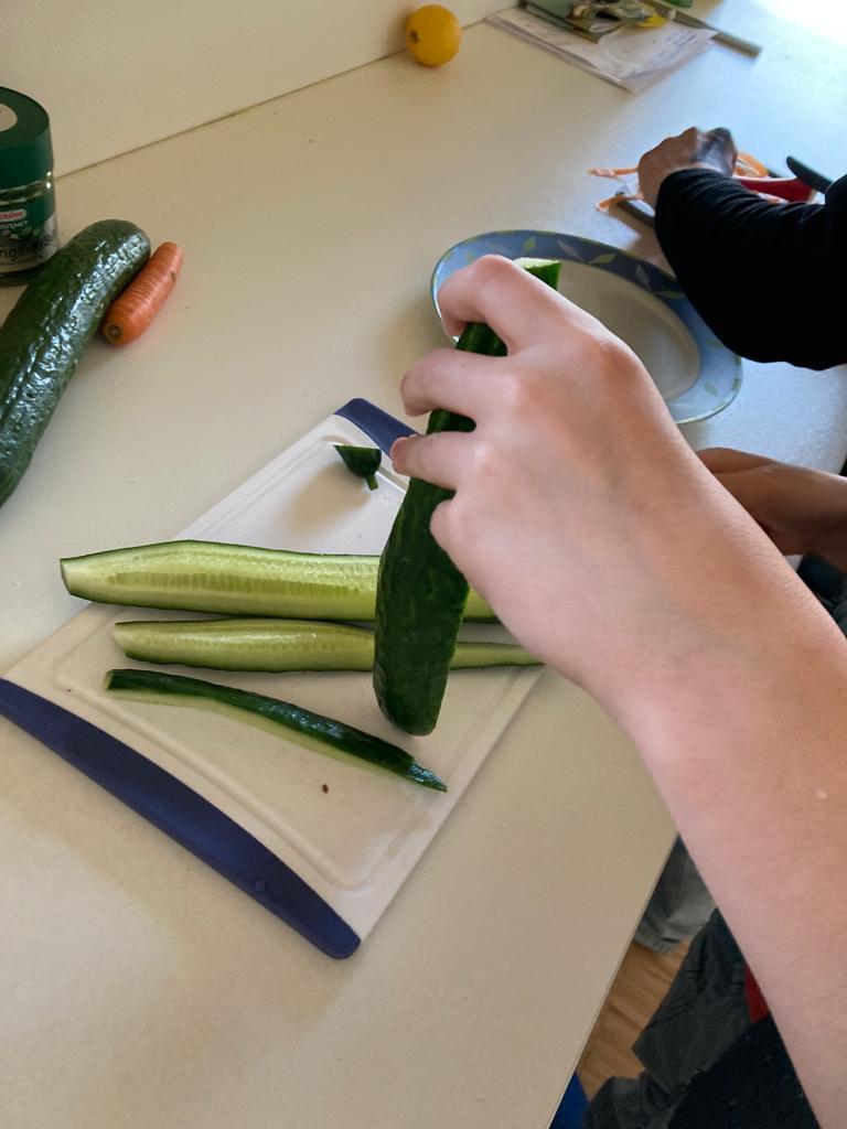 Im März waren wir mit Smoothies, Tischfußball sowie einem Liegestützturnier sehr gesund unterwegs. Da dürfen herzhafte Snacks nicht fehlen und so machten wir am 22.3. gemeinsam Gemüsesticks.