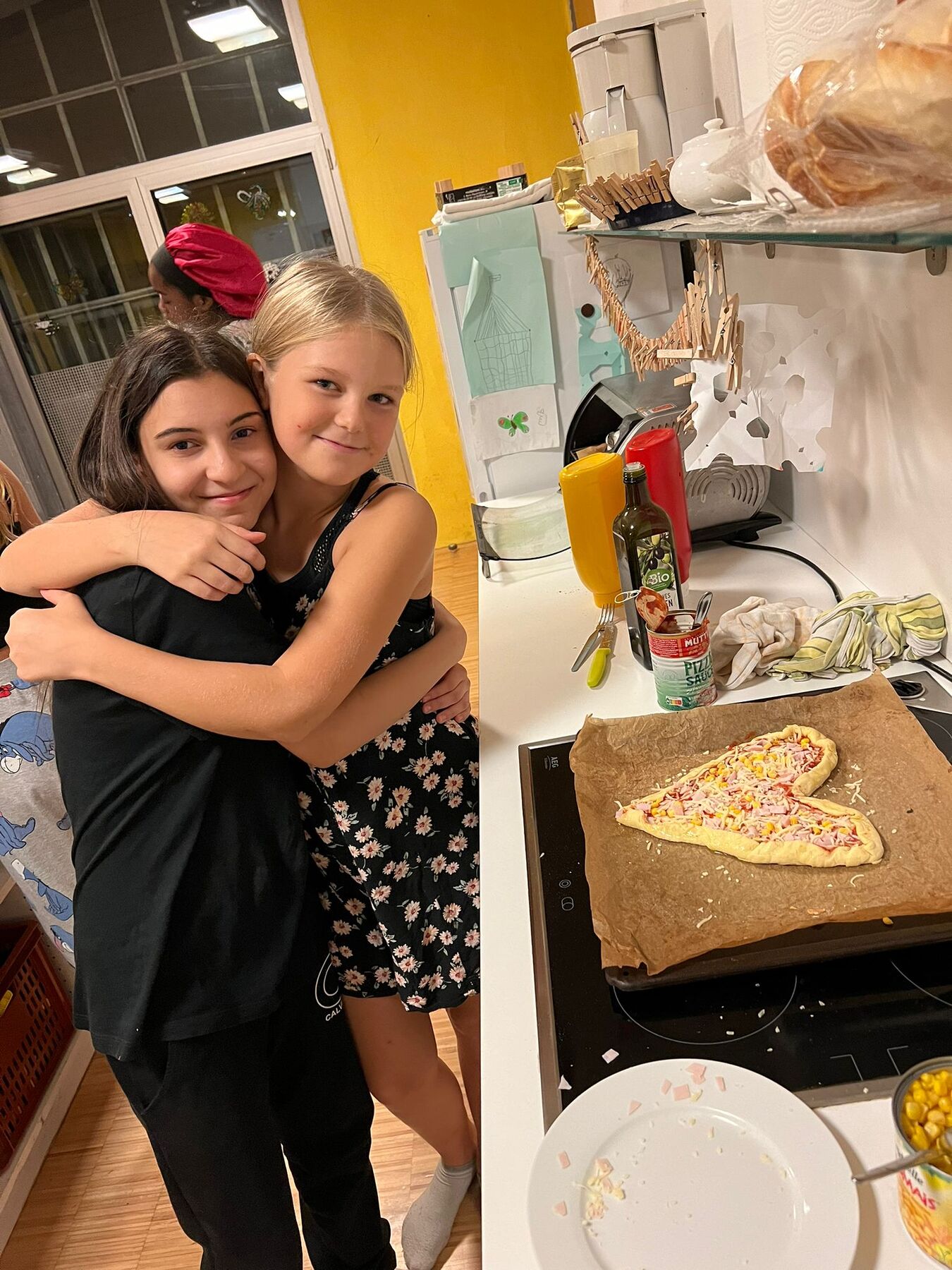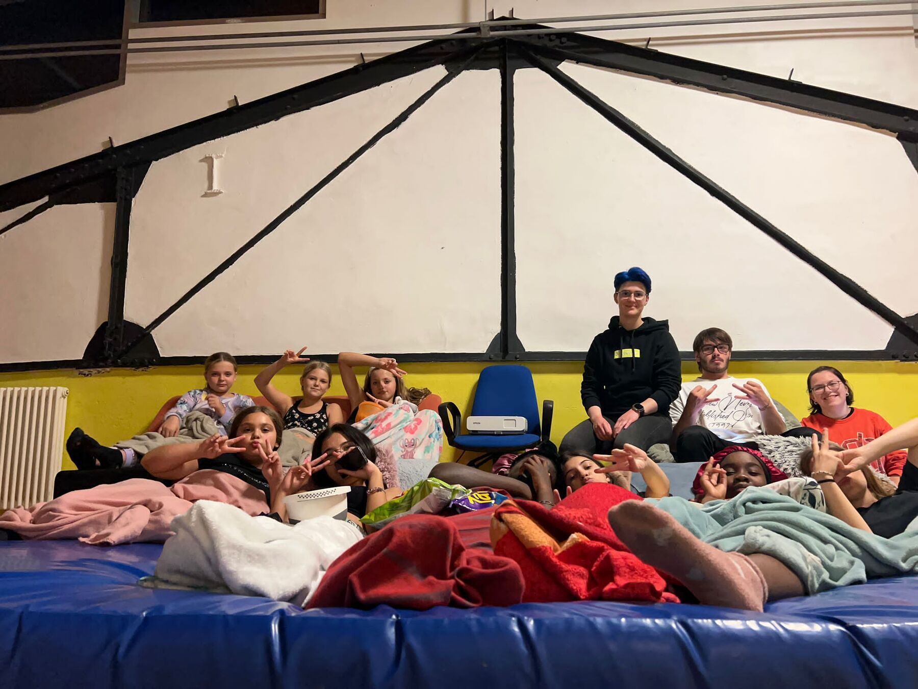 Um 19:30 Uhr (nach dem normalen Betrieb) blieben also 9 motivierte Mädchen für die Übernachtung bei uns in der TURBINe. Nach kurzem Bett-richten starteten wir mit dem ersten Highlight, und zwar Pizza backen. Jeder konnte sich seine eigene Pizza formen und nach Wunsch belegen. Nachdem alle gegessen hatten, nutzten wir die Dunkelheit aus und spielten Verstecken und Blinde Kuh im Dunkeln. Später schauten wir auch noch einen “gruseligen” Film: Coraline. Danach war auch schon Schlafenszeit.