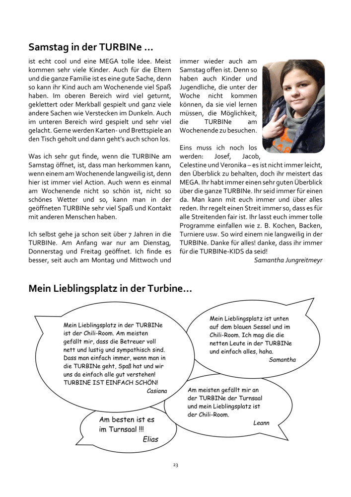 Taucht in die Welt der TURBINe ein und lasst euch von lustigen, spannenden, interessanten, emotionalen und informativen Erlebnissen, Erzählungen und Geschichten von und Rund um die TURBINe, bereichern. Natürlich gibt es auch einige Fotos und Berichte unserer Kids mit denen es uns immer eine Freude ist eine wervolle und sinnvolle Zeit in der TURBINe zu verbingen. Danke an die Spenderinnen und Spender, die das möglich machen.