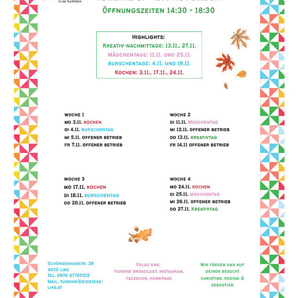 Die Tage werden kürzer und auch grauer aber in der Turbine wartet ein abwechslungsreiches Programm auf die Kids, das die Stimmung heben wird.