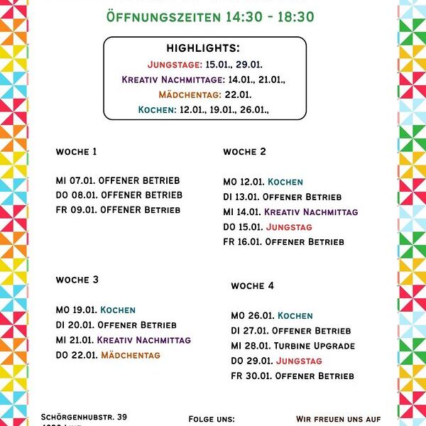 Komm vorbei, bring Freund:innen mit und gestalte deinen Jänner mit uns!