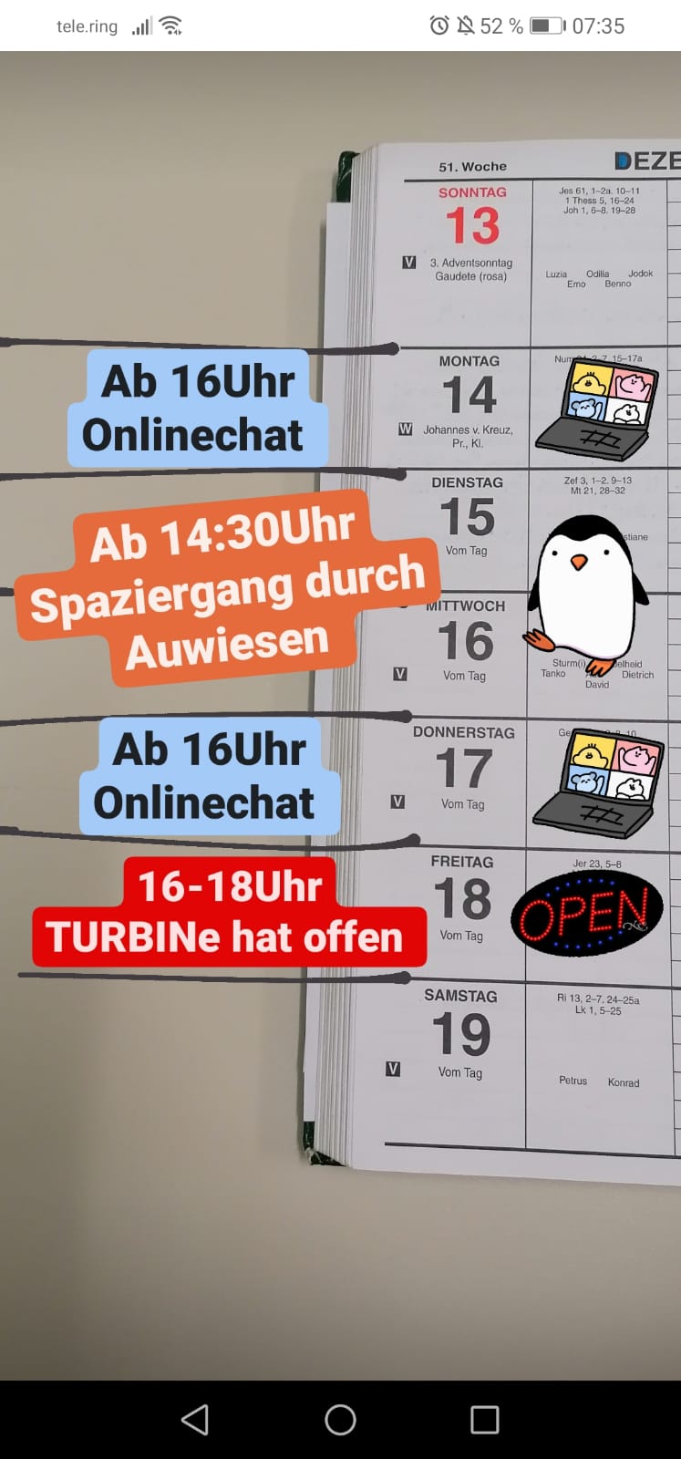DIese Woche sperren wir am Mittwoch die TURBINe auf. Ihr könnt euch dafür anmelden und für ein Gespräche vorbeikommen.