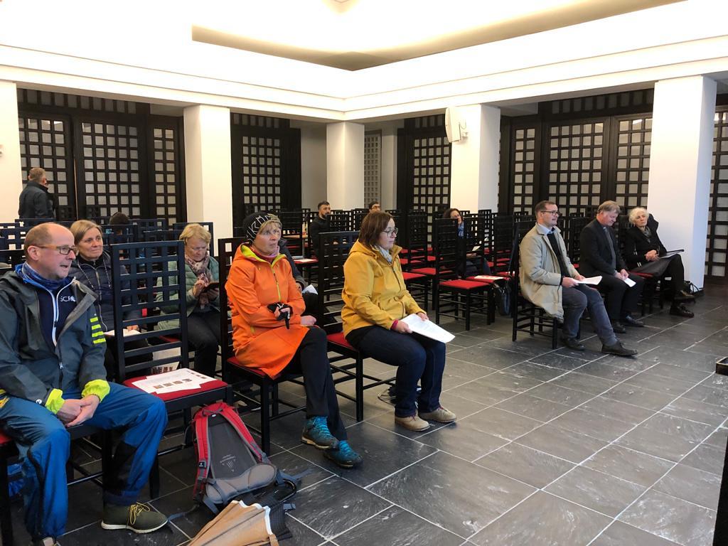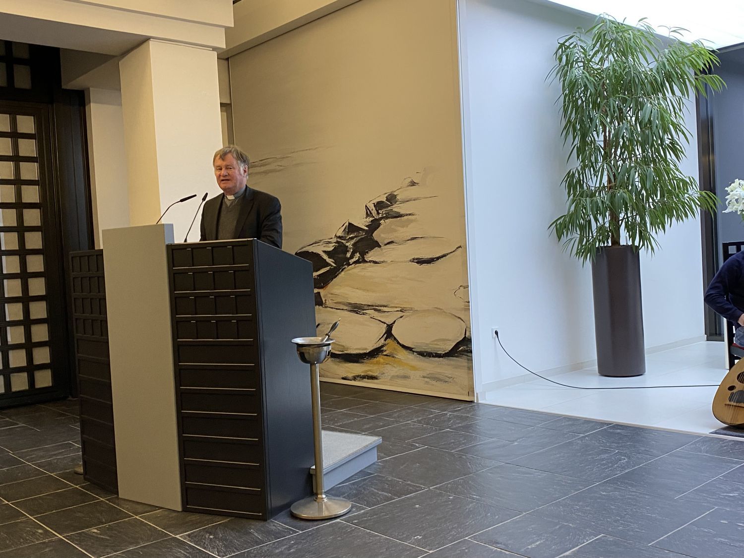 Aufgrund des anhaltend schlechten Wetters war es nicht möglich, die multireligiöse Gedenkfeier direkt beim Gedenkort abzuhalten, weshalb sie in einen Innenraum verlegt wurde.