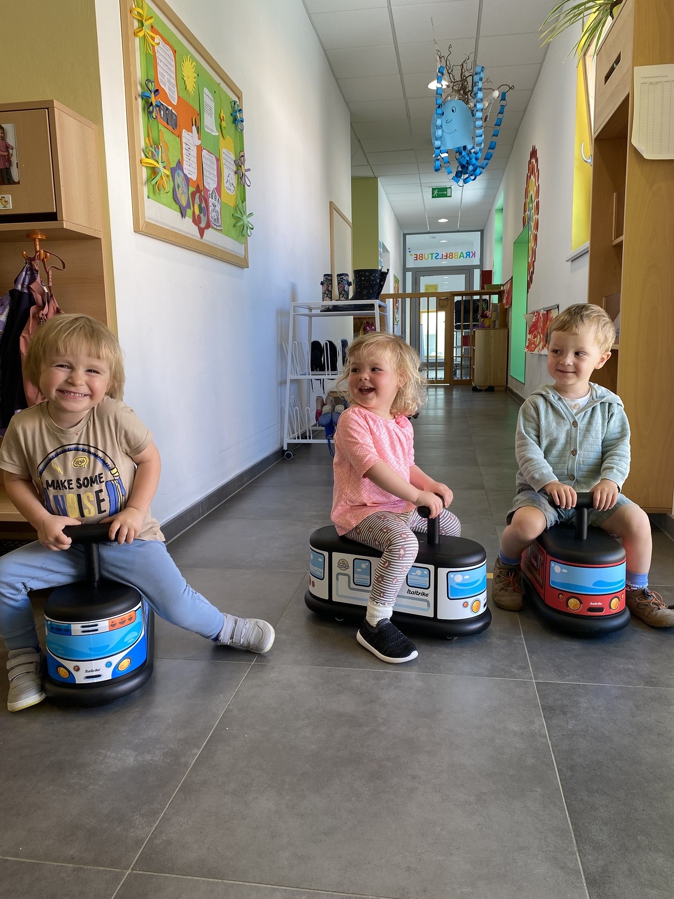 Ebenso möchten wir uns von Herzen bei allen Eltern für Ihr Vertrauen und Ihre Unterstützung bedanken. Es ist schön zu sehen, wie gelebte Bildungs- und Erziehungspartnerschaft zum Wohle der Kinder gelingen kann. Nicht zuletzt möchten wir uns auch für die großzügigen freiwilligen Spenden bedanken, die es uns ermöglichten, drei neue Rutschautos anzuschaffen. Die Kinder nehmen die neuen Flitzer mit Begeisterung an – eine Investition, die sich absolut gelohnt hat!