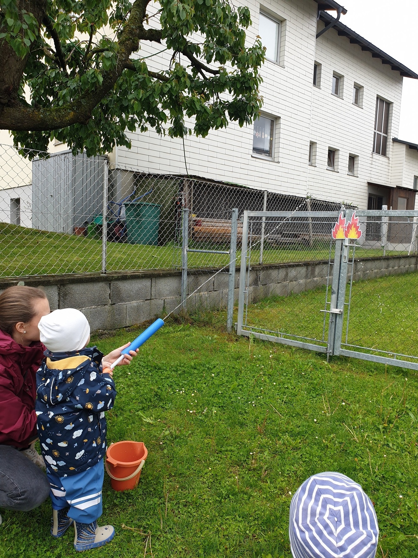 Man munkelt, dass im Garten bereits eifrig geübt wird, und so manche zukünftige Feuerwehrfrau und so mancher zukünftiger Feuerwehrmann schon jetzt das Löschen trainiert. Wer weiß, vielleicht haben wir hier schon die Einsatzkräfte von morgen!