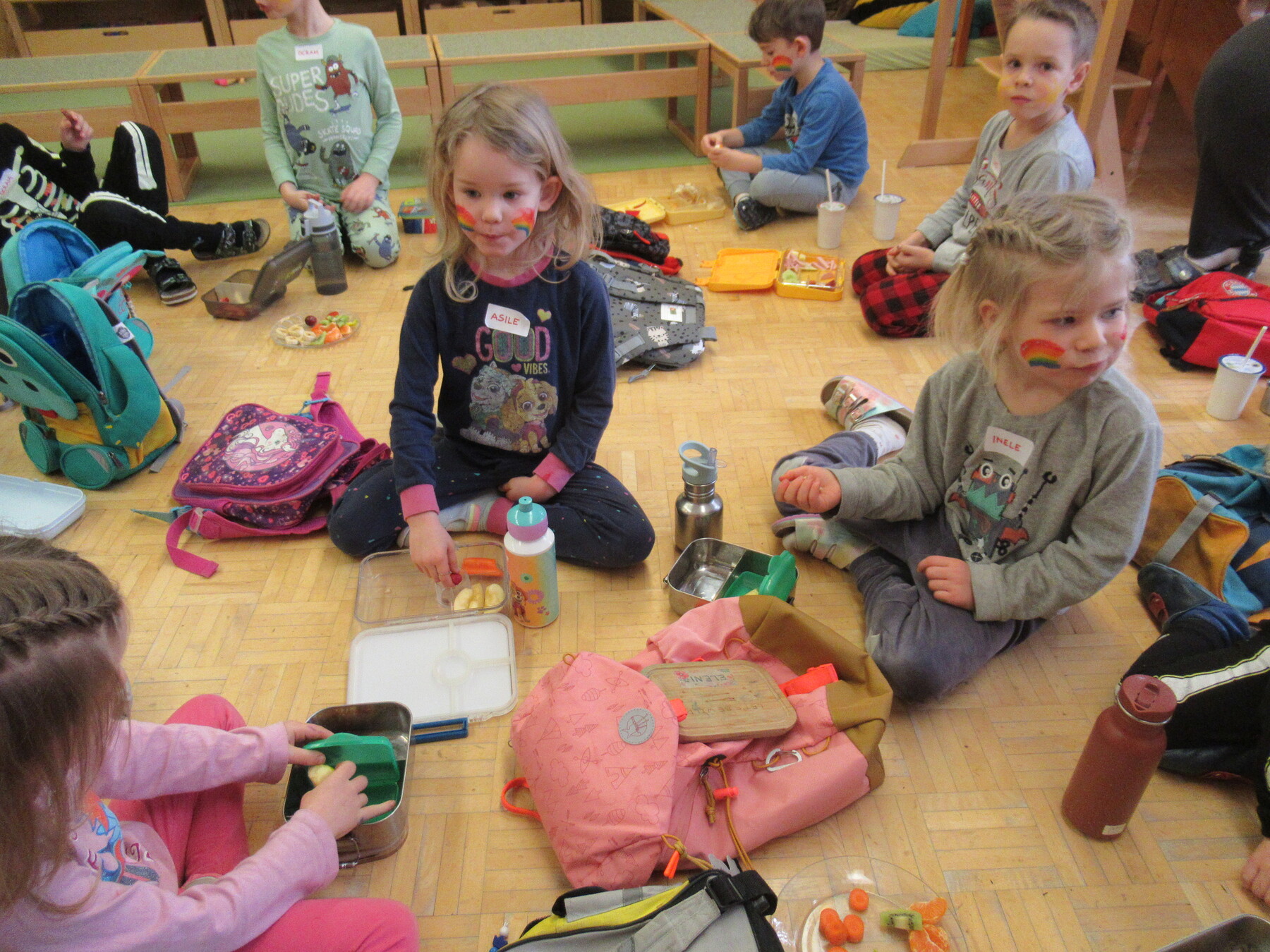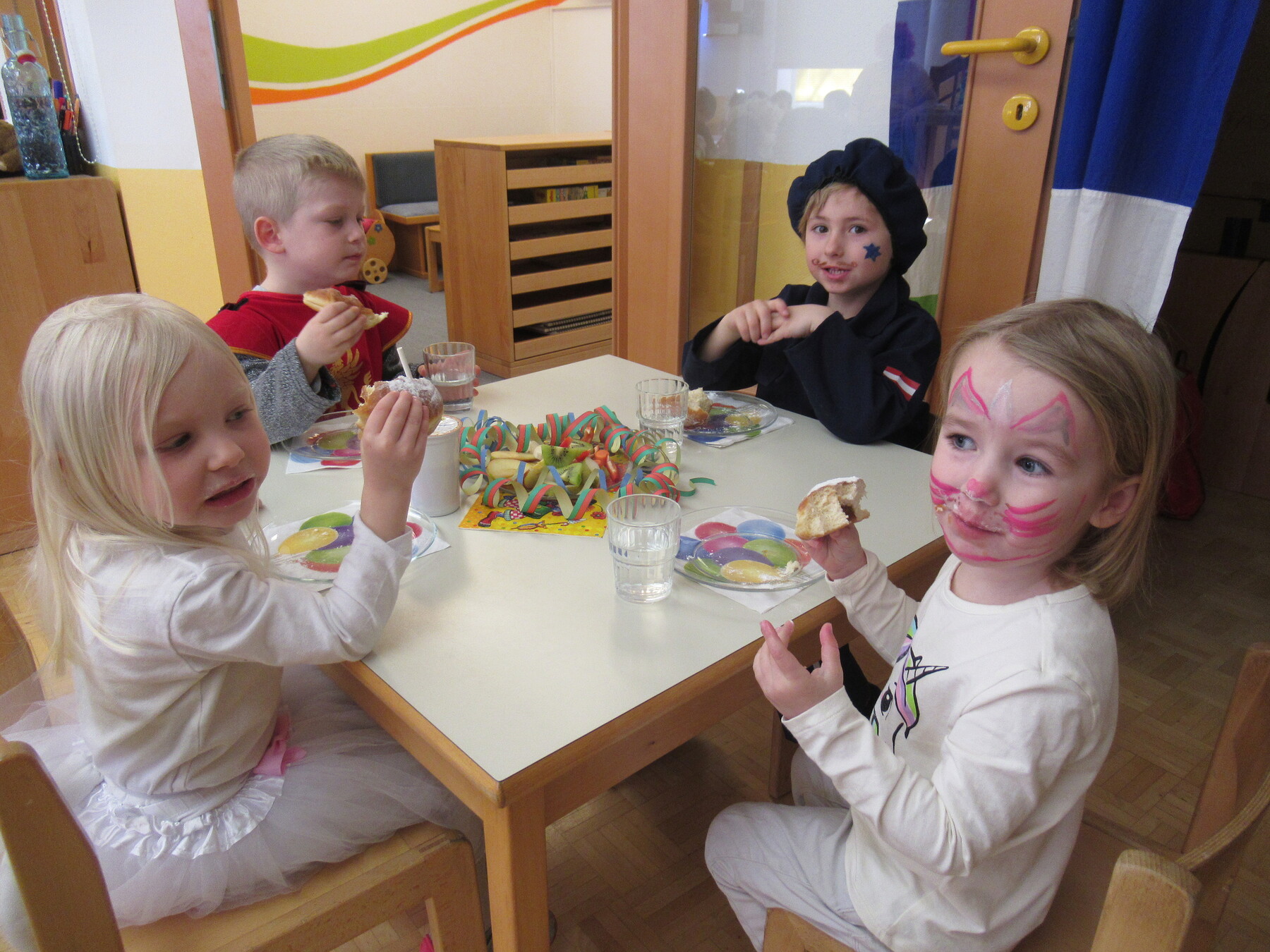 Am Montag war „Bewegungstag“, am Dienstag „Basteltag“, am Mittwoch war „Alles verkehrt Tag“. Dass sich die Kinder schminken lassen konnten, durfte in dieser Woche natürlich auch nicht fehlen. Am Donnerstag gab es noch eine lustige Faschingsjause und am Freitag einen „Kinotag“.