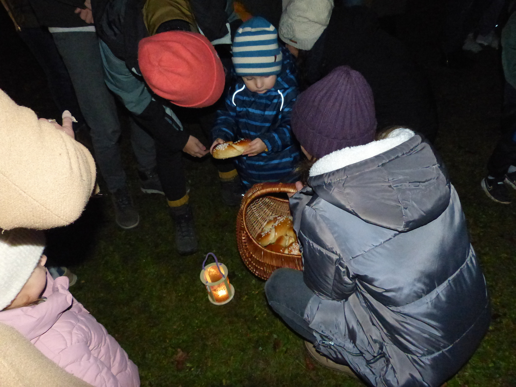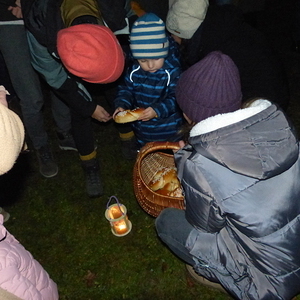 Bevor wir uns bei Punsch und Keksen stärkten, bekamen die Kinder noch ein Martinskipferl, das sie ganz im Sinne des heiligen Martin miteinander teilen konnten.