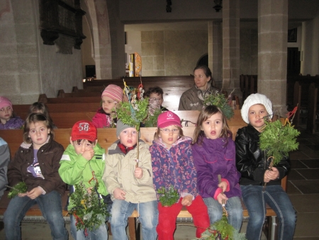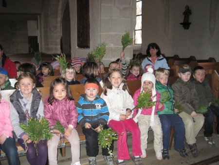Nach alter Tradition wurden auch heuer wieder, wie jedes Jahr mit Hilfe einiger Mütter Palmbuschen gebunden.